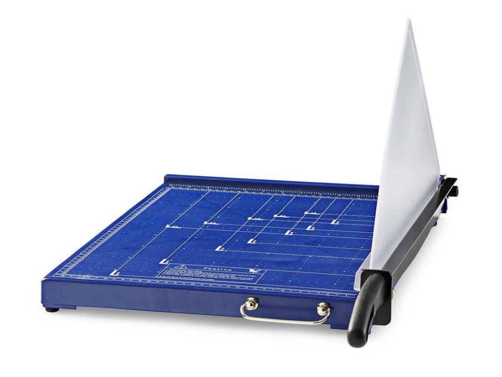 Nedis PACU110A3Profesionální řezačka papíru formátu A3. Deska o rozměrech 430 × 360 mm disponuje měřítkem v centimetrech a palcích a vyznačenými standardními velikostmi papíru. Nastavitelný doraz pro přesné nastavení velikosti řezaných dokumentů, akrylový bezpečnostní kryt pak chrání před úrazem prstů.