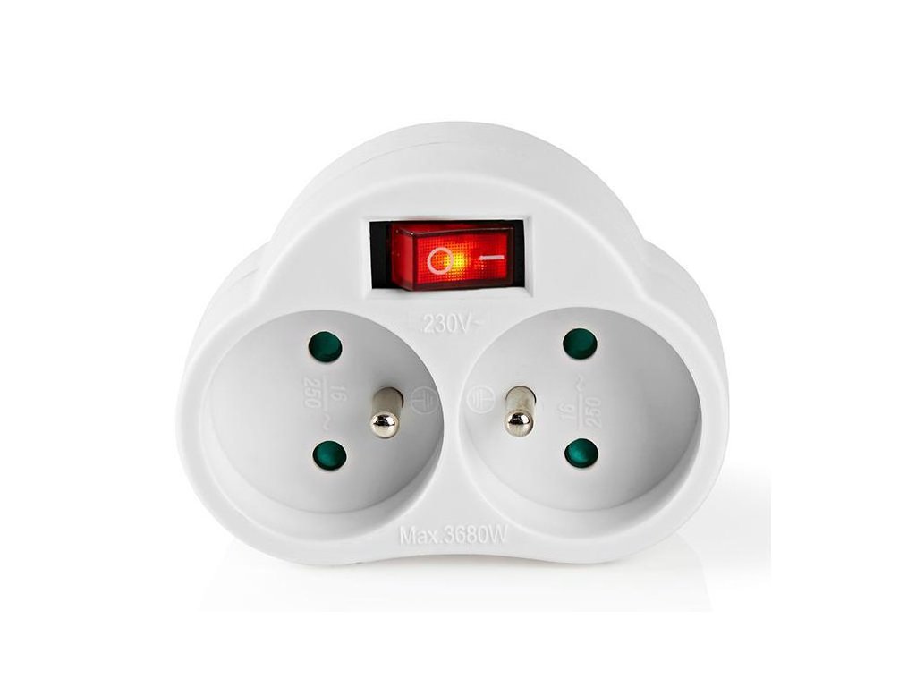 NEDIS síťový rozbočovač/ 2x zásuvka typu E (s kolíkem)/ 250 V AC 50/60 Hz/ 16 A/ 3500 W/ vypínač/ bílý PSSPL202SEWT