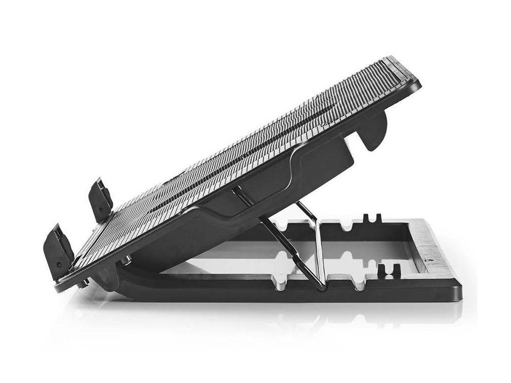 Nedis NBCR200BKPraktická podložka nabízí výkonné chlazení vašeho notebooku. Disponuje dvěma ventilátory o velikosti 140 mm pro efektivní a mimořádně tichý provoz. Zajisté potěší také dva USB porty pro připojení dalšího příslušenství.