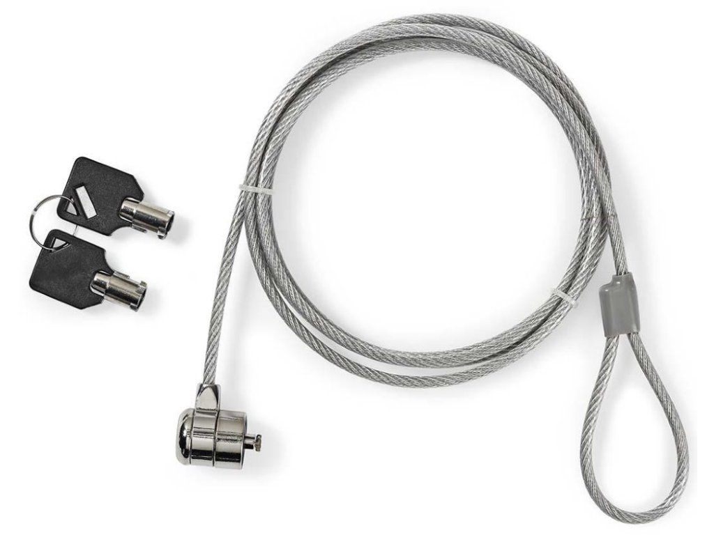 Nedis NBLKK1002ME; Univerzální zámek vhodný k zabezpečení např. notebooku, projektoru, počítače či LCD obrazovky. Lanko je z pevné oceli, měří 1,8 m a ochrání před odcizením. Součástí balení jsou 2 identické klíče. ZÁKLADNÍ SPECIFIKACE; Délka kabelu: ...