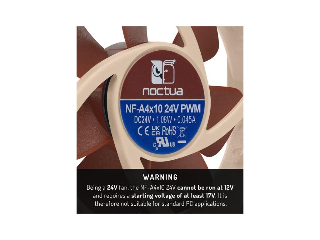 - Na rozdiel od mnohých lacných ventilátorov bol NF-A4x10 24V PWM dôkladne testovaný z hľadiska elektrickej bezpečnosti, odolnosti a vyžarovania. Má certifikáty CE, TÜV, UKCA a UL a spĺňa všetky platné normy (EN 62368-1, EN 55035, EN 55032, UL-507), je to skrz naskrz bezpečné a kvalitné zariadenie.