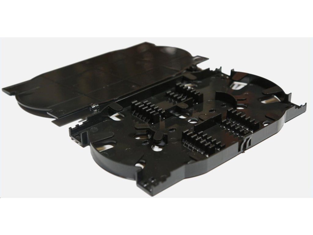 Optický zásobník 1U, variabilný (bez čela, pozri.príslušenstvo), vrátane kazety na 24 zvarov, čierna- 1x kazeta na 24 zvarov, vrátane tŕňov na pripevnenie zvarov (dva zvarov nad sebou)