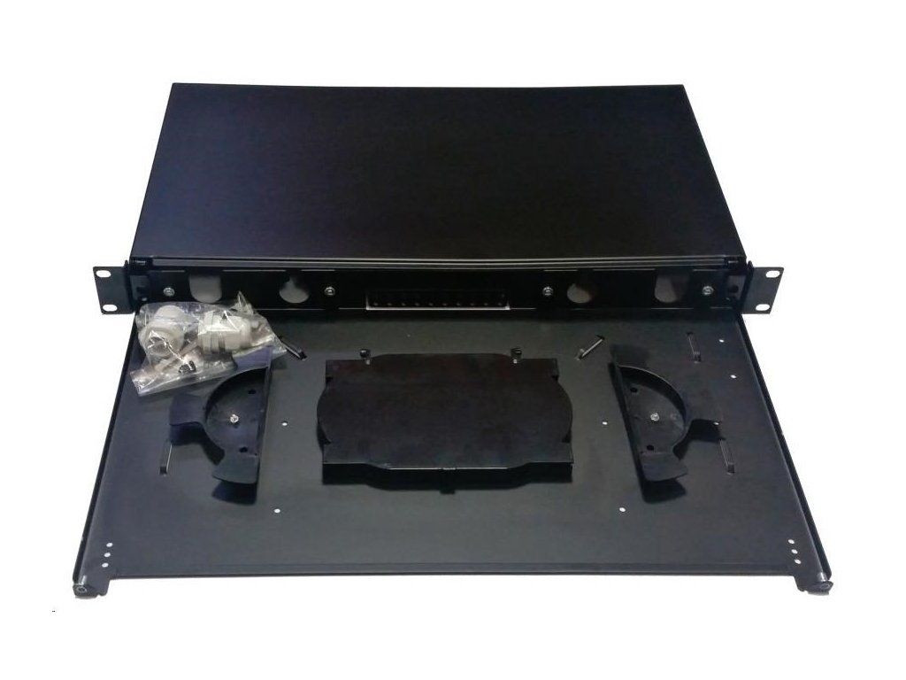 Optická vana výsuvná 1U, modulární bez čela s kazetou na 24 svarů, černá OPVANA1UN-BLACK