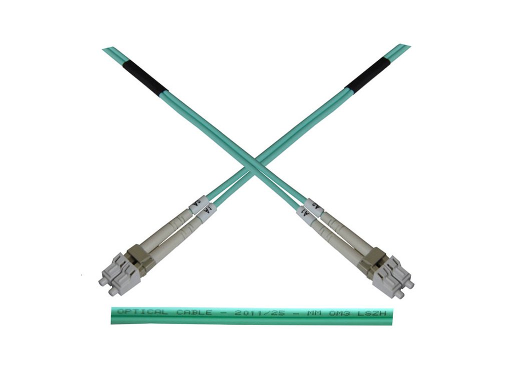 Optický patch kabel duplex LC-LC Optický patchcord (jumper kabel) je standardní nebo na míru vyrobený propojovací optický kabel, zakončený na obou stranách optickými konektory. Patchcordy se používají k propojení zařízení uvnitř rozvaděče, nebo k připojení aktivních prvků k optické trase zakončené v rozvaděči. Patchcordy bývají zpravidla duplexní (2x vlákno, 4x konektor), na přání lze dodat i kabely simplexní (1x vlákno, 2x konektor) pro jedno-vláknové xWDM aplikace. Konektory E2000, SC a LC jsou pak v duplexním provedení spojeny sponou - ta je rozebíratelná a umožňuje tak rozdělení duplexního patchcordu na dva simplexní (nelze pouze u odolné varianty HEAVY DUPLEX). Uvedené patchcordy jsou pouze úzkým výběrem ze sortimentu. Dále jsme schopni patchcordy dodat s konektory E2000, ST, SC, LC, FC, MTRJ, VF-45. Technická specifikace: Typ vlákna: MM, 50/125, OM3 Konektory: LC-LC Broušení: UPC-UPC Barva: Tyrkysová Armorování: NE Plášť: LSZH Průměr: 3mm Délka: 3m Provedení: Duplex Skladovací a provozní teplota: -40 až +70°CDodatočné parametre