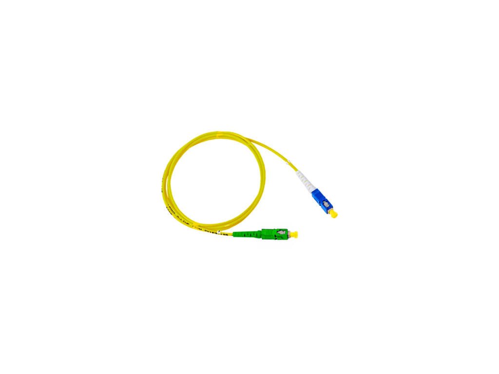 Optický patchcord (jumper kabel) je standardní nebo na míru vyrobený propojovací optický kabel, zakončený na obou stranách optickými konektory. Patchcordy se používají k propojení zařízení uvnitř rozvaděče, nebo k připojení aktivních prvků k optické trase zakončené v rozvaděči. Patchcordy bývají zpravidla duplexní (2x vlákno, 4x konektor), na přání lze dodat i kabely simplexní (1x vlákno, 2x konektor) pro jedno-vláknové xWDM aplikace. Konektory E2000, SC a LC jsou pak v duplexním provedení spojeny sponou - ta je rozebíratelná a umožňuje tak rozdělení duplexního patchcordu na dva simplexní (nelze pouze u odolné varianty HEAVY DUPLEX). Uvedené patchcordy jsou pouze úzkým výběrem ze sortimentu. Dále jsme schopni patchcordy dodat s konektory E2000, ST, SC, LC, FC, MTRJ, VF-45. Technická specifikace Typ vlákna: SM, 09/125, OS2, G657A1 Konektory: SC-SC Broušení: APC-UPC Barva: Žlutá Armorování: NE Plášť: LSZH Průměr: 3mm Délka: 2m Provedení: Duplex Skladovací a provozní teplota: -40 až +70°CDodatočné parametre
