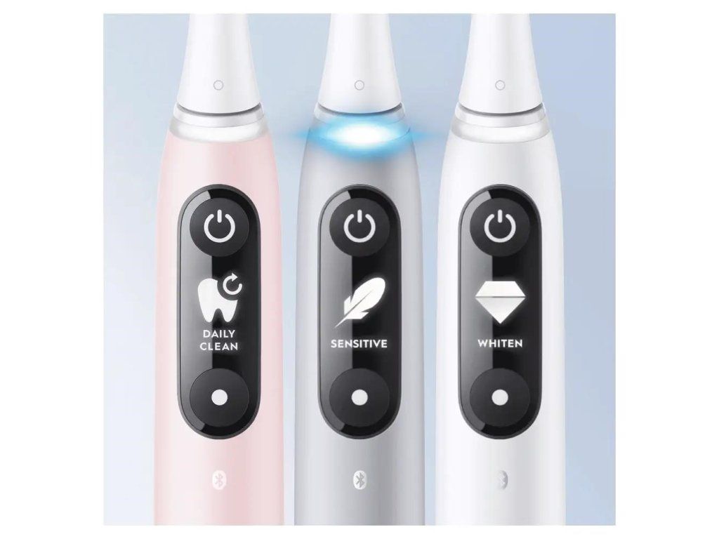 Dodnes najdôkladnejšie a najpohodlnejšie čistenie zubov pod značkou Oral-B! Vyskúšajte pokročilú technológiu a špičkové prevedenie zubnej kefky Oral-B iO6 a už nikdy nebudete chcieť nič iné! Inovatívny systém magnetického pohonu iO prenáša čistiacu energiu jemných mikrovibrácií na konce vláken, ktoré tak ľahko kĺžu po zuboch a robia čistenie účinným a príjemným. Zdokonalený chytrý senzor tlaku chráni ďasná a signalizuje, kedy si zuby čistíte správne. Umelá inteligencia rozpozná váš štýl čistenia a poradí vám, aby ste si vyčistili všetky zuby a nevynechali žiadne miesto.