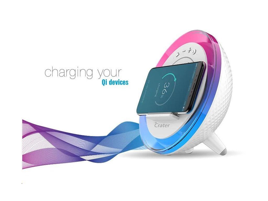 V neposlednom rade využijete Crater-9 tiež na doplnenie „šťavy“ pre váš smartphone. Na nabíjanie využíva bezdrôtovú Qi technológiu s výkonom 10 W, čo je nielen pohodlné, rýchle, ale aj šetrné. Vyhnete sa hľadaniu nabíjacieho kábla a jeho zbytočnému ohýbaniu a šetríte aj nabíjacie porty mobilného telefónu. Smartfón stačí položiť na vyznačenú plochu určenú na nabíjanie, kde sa vám mobil s podporou Qi technológie elegantne nabije, aj keď práve počúvate hudbu alebo sladko spíte.