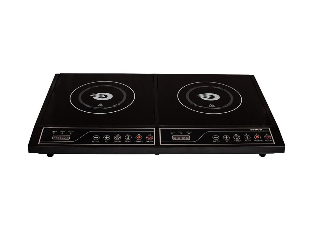 Indukčná varná doska Orava. Indukčná varná doska VP-40i so dvoma varnými zónami, ktoré tvoria elegantné čierne sklo s veľmi jednoduchou údržbou. Prehľadné dotykové ovládanie umožňuje osem úrovní nastavenia teploty od 60°C do 240°C. Časovač, LED displej.