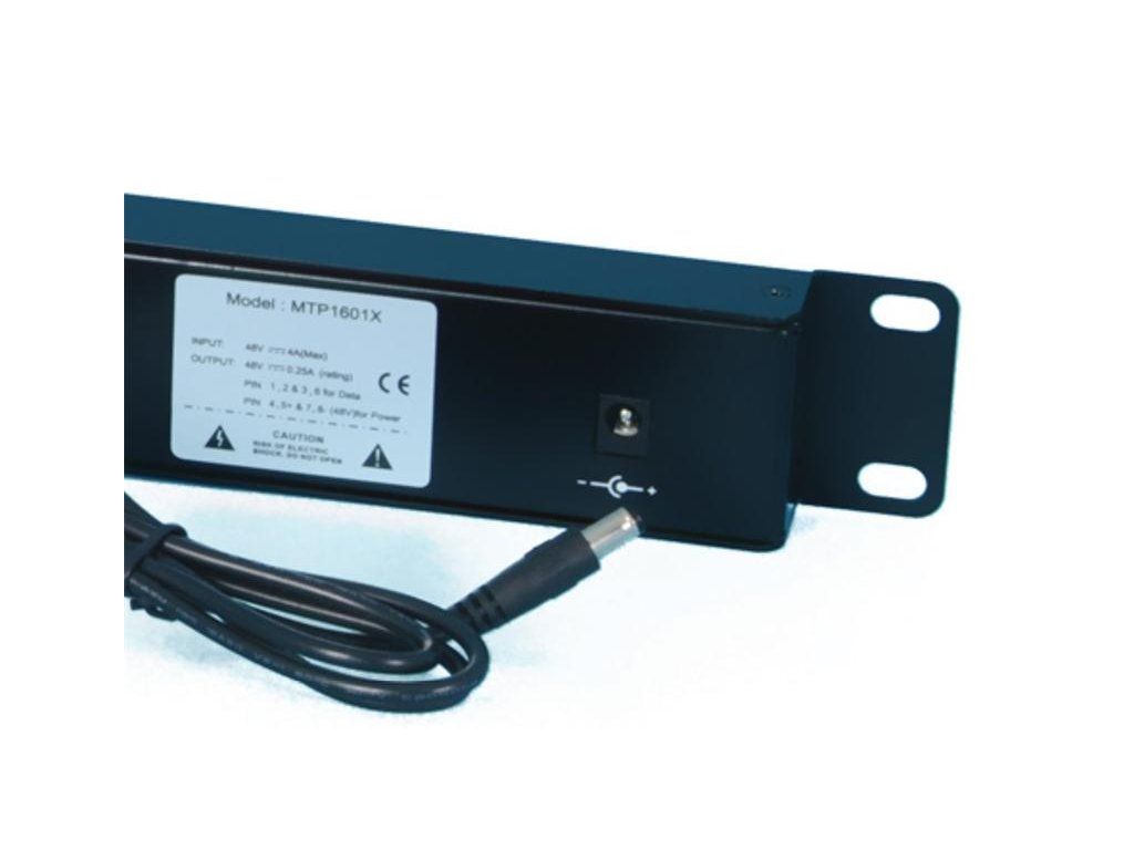 16 Portový pasívny PoE panel bez zdroja Určený až pre 16 zariadení ktoré umožňujú vzdialené napájanie cez datový kábel pomocou PoE. Napájané zariadenie musí obsahovať aktivny splitter popr. musí býť na konci iné zariadenie, ktoré upraví injektované napätie v káblu na napätie požadované zariadením (napr. koncové zariadenie které splňujú normu 802.3af). Pridáním tohto priechodzieho panelu do rozvádzača získáte napájacie centrum, ktoré jednoduchým spôsobom zapojíte medzi stávajúci switch a patchpanel, ktorý už vedie k napájanému zariadeniu (IP kamera, IP telefon, wireless AP apod.) Data páry : 1/2 & 3/6 Napájacie páry : 4/5 (+) & 7/8 (-) - konektor na tele panelu Data in konektor : Na pripojenie PC/HUB/Switch Váha : 0.68Kg Rozmery : 482.6mm x 44.3mm x 21.8mm Priepustnosť : 10/100Mbps Normy : TIA/EIA 568 Cat. 5 Konektory : RJ-45 Pracovná teplota : 0~40 stupňov Skladovacia teplota : -40~70 stupňov Pracovná Humidita :10%~80% RH Skladovacia Humidita : 5%~90% RH Certifikácia : CEDodatočné parametre
