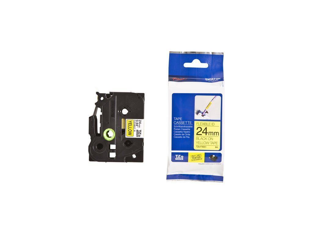 páska BROTHER TZFX651 čierne písmo, žltá páska FLEXIBLE ID Tape (24mm) TZEFX651