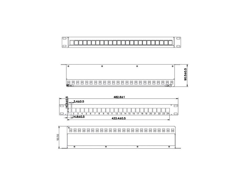 Rozmery (V x Š x H) 45 x 483 x 90 mm