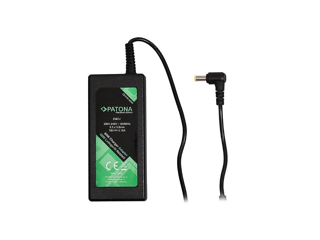 PATONA Premium 60 W; Napájecí adaptér PATONA s výkonem 60 W pro notebooky Samsung. ZÁKLADNÍ SPECIFIKACE; Výkon: 60 W; Napětí: 19 V; Proud: 3,15 A; Konektor: 5,5 x 3 mm; Nahrazuje: AD-6019, AP04214-UV, ADP-60ZH A, BA44 -00243A; Kompatibilita: Samsung A...