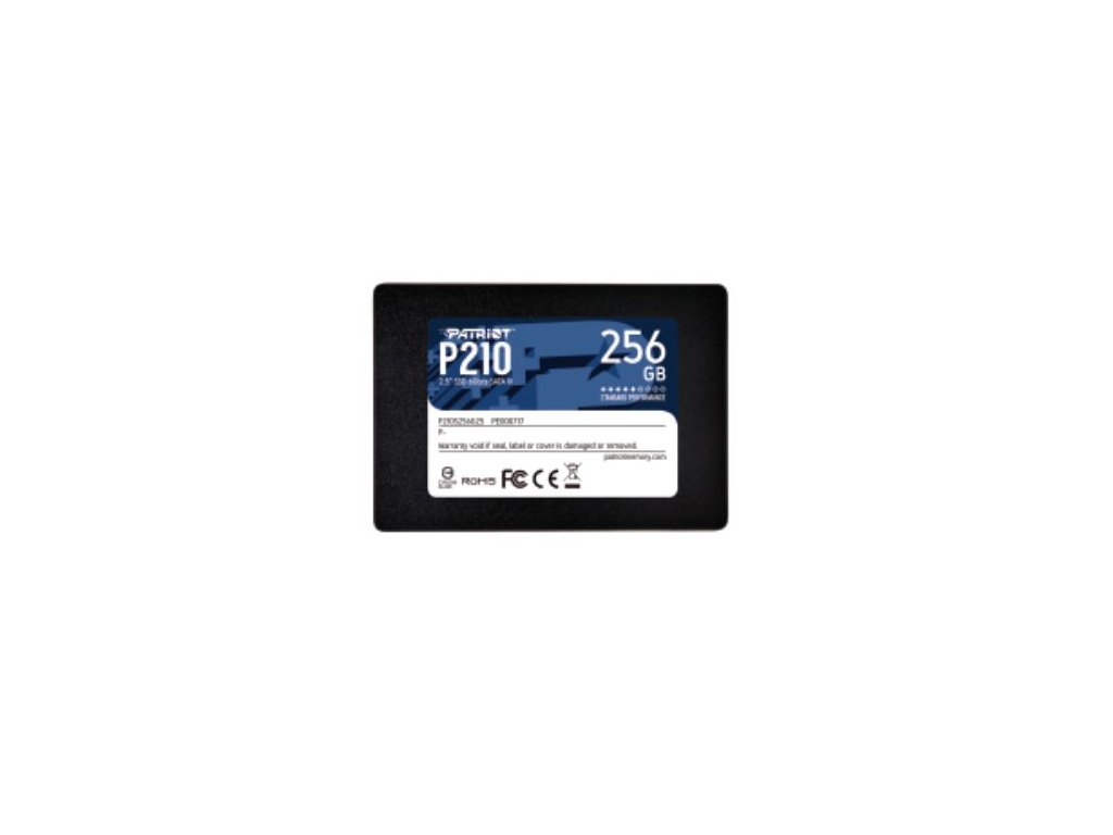 Model: Patriot P210 SSD 256GB SATA 3, 2.5'' Kapacita: 256 GB Typ disku: SSD (2,5'') Rozhraní: SATA 3 Přenosová rychlost: 500/400 MB/s (čtení/zápis) Provozní teplota: 0 až 70°C Rozměry: 100 x 69,6 x 7 mm Hmotnost: 50 g Podporované OS: Windows 7/8.0/8.1/10 Záruka: 36 měsícůDodatočné parametre