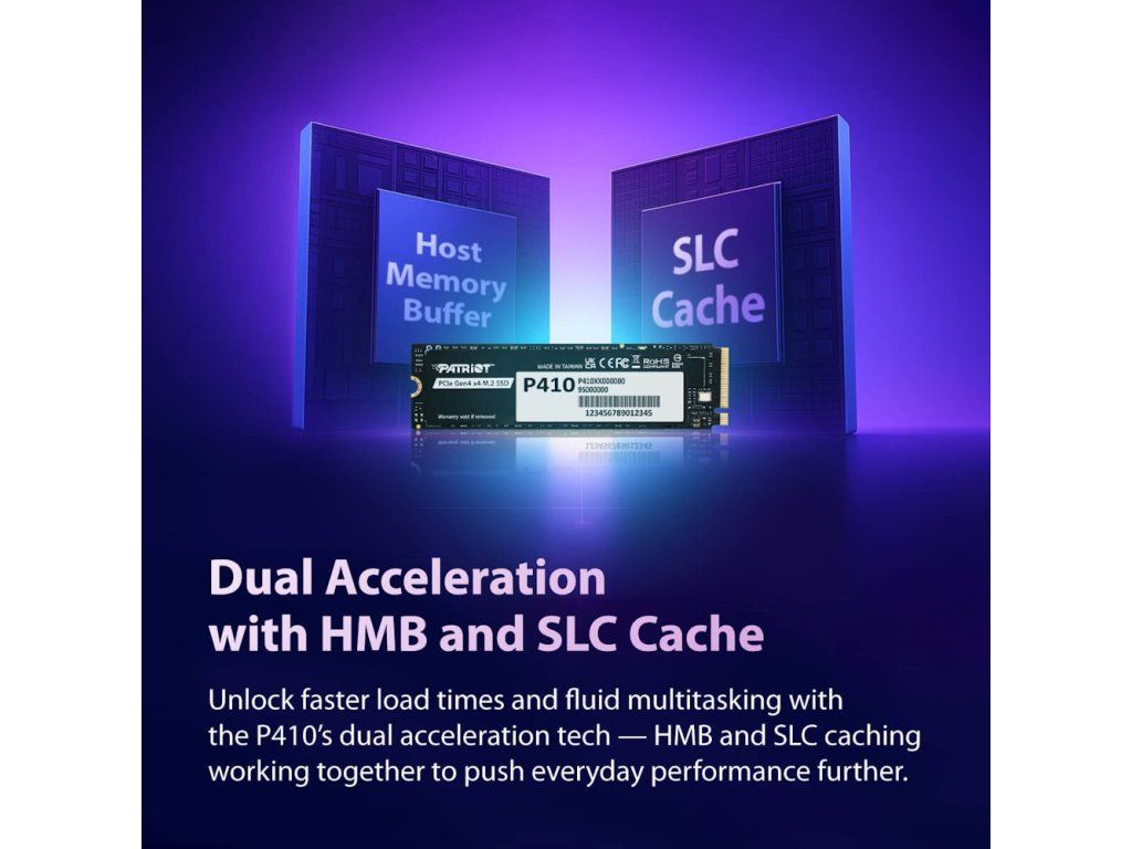 Design s vysoce účinným tenkým grafenovým chladičem je navržen s ohledem na efektivní chlazení a celkově optimální tepelný management. Technologie SmartECC se postará o ochranu a integritu dat. Mezi další přednosti patří nízká spotřeba energie a méně produkovaného tepla. Také díky tomu je SSD jednotka Patriot P410 ideálním úložiště pro notebooky, případně další přenosná a kompaktní zařízení. Disponuje úložištěm 4 TB a představuje tak obří kapacitu pro ukládání filmů, videí, her, pracovních projektů a dalších multimédií ve vysokém rozlišení.