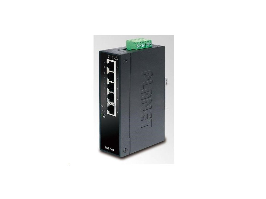 Planet switch IGS-501T, průmysl.verze 5x10/100/1000, DIN, IP30, -40 až 75°C, 12-48V, ESD+EFT IGS-501T