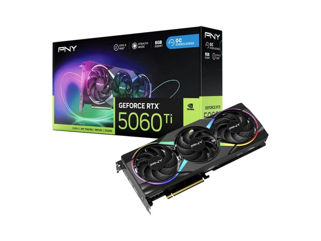 PNY VGA NVIDIA GeForce RTX 5060 Ti ARGB Triple Fan 8GB OC, RTX 5060 Ti OC, 8GB GDDR7, 3xDP, 1xHDMI VCG5060T8TFXXPB1-O