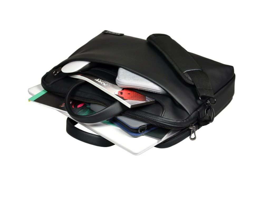 Taška ZURICH je módní taška na notebook, ve které můžete stylově nosit váš Macbook, Ultrabook či notebook. Hlavní úložný prostor má polstrovanou strukturu pro bezpečné přenášení vašeho notebooku a dokumentů. Velká a praktická přední kapsa na zip vám umožní nosit sebou vaše věci jako telefon, tužky, vizitky, ale i napájecí zdroj. 2 boční kapsy pro příslušenství (napájení / myš) Vlastnosti: *Elegantní a moderní provedení *Celá taška je polstrovaná pro bezpečí vašeho notebooku *Pohodlná rukojeť *Popruh pro připevnění na vozík *Nastavitelný a odnímatelný ramenní popruh *Velká přední kapsa na zip *2 boční kapsy pro příslušenství (napájení / myš) *Velkorysý prostor pro notebook a dokumenty Specifikace: *KOMPATIBILITA: 14/15'' *VNĚJŠÍ ROZMĚRY: 42 x 36,5 x 5,5 cm *VNITŘNÍ ROZMĚR pro notebook: 39 x 26,5 x 3,5 cm *VÁHA: 810 gr *VNITŘNÍ MATERIÁL: 150D Polyester *VNĚJŠÍ MATERIÁL: Syntetická kůžeDodatočné parametre