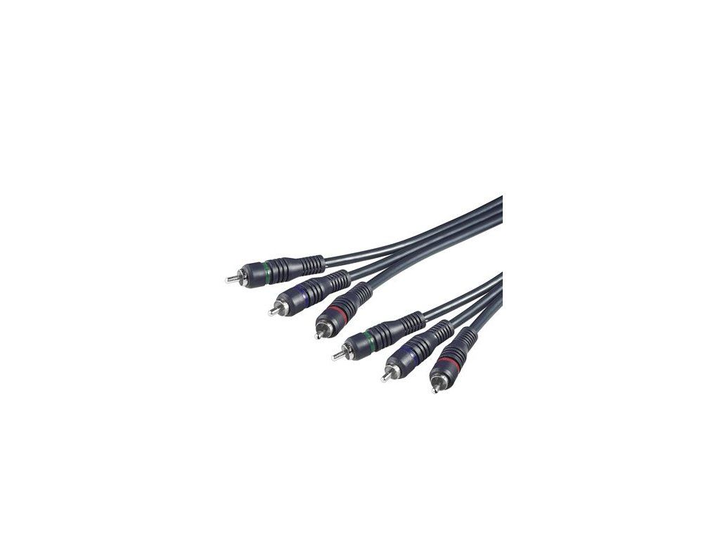 Kabel pro spojení dvou audio/video. Na obou stranách jsou 3 konektory RCA (cinch). Kabel je v černé barvě. Vysoce kvalitní a stíněné provedení. Konektory: 3x CINCH RCA - 3x CINCH RCA kabel M/M, YUV/RGB video Kabel je možno použít pro přenos komponentního YUV/RGB video signálu (3x cinch konektory označené barvami: červená, zelená, modrá) nebo je možné kabel použít pro přenos kompozitního video signálu a stereo audio signálu (na zařízení konektory cinch bývají označeny barvami: žlutá, červená, bílá) Barva kabelu: černá Délka: 2mDodatočné parametre
