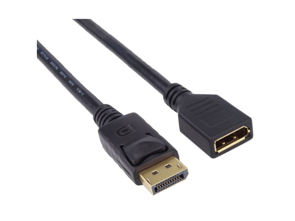 Predlžovací kábel pre digitálne audio a video rozhrania DisplayPort. Poskytuje kvalitu videa podobný HDMI V.1.3, ale na dlhšiu vzdialenosť. Dĺžka 3 metre. Rozlíšenie až 2560 x 1600 bodov, 1080p kompatibilný. Maximálny dátový prenos 10,8 Gb/s, 19-wire kábel, dvojité tienenie, AWG30. Dĺžka 3 metre. Farba čierna.