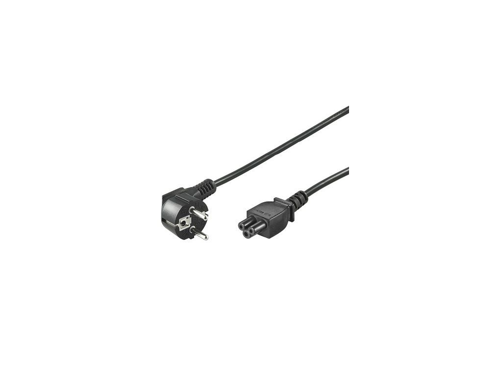 Napájecí kabel v černém provedení pro notebook. Třížilový kabel je zakončený zástrčkou typu ''Mickey mouse'' IEC 320 C5. Parametry a specifikace: - První konektor: CEE 7/7 úhlová vidlice 230V UNISCHUKO - Druhý konektor: IEC 320 C5 zásuvka pro notebook - Průřez vodiče: 3x0,75mm2 - Proudové zatížení: max 10A - Napětí max.: 250V - Barevné provedení: černé - Úhlová zástrčka do zásuvky - Délka kabelu: 2mDodatočné parametre
