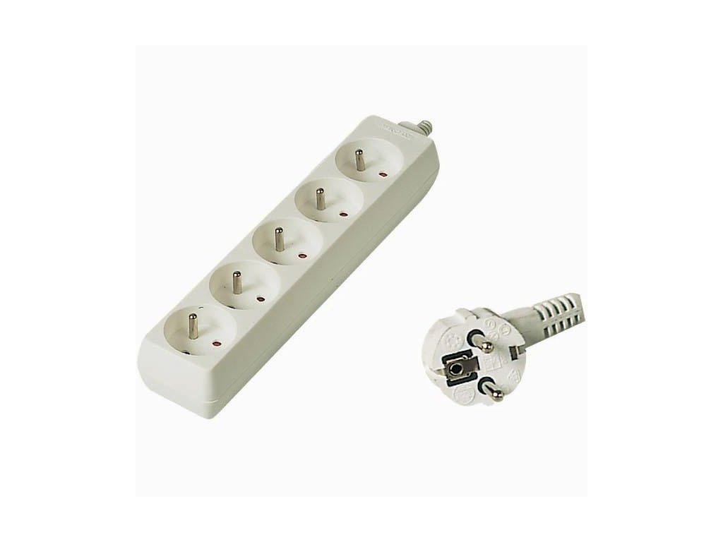 Praktický predlžovací kábel s 5 zásuvkami a detskou poistkou (detskou clonou). Dĺžka kábla je 2m. Balené v PE sáčku so závesným systémom. Maximálne napätie: 250 V. Maximálny prúd: 10A. Maximálna záťaž: 2300W. Vodič kábla: H05VV-F3G 1 mm2. Detská poistka: áno