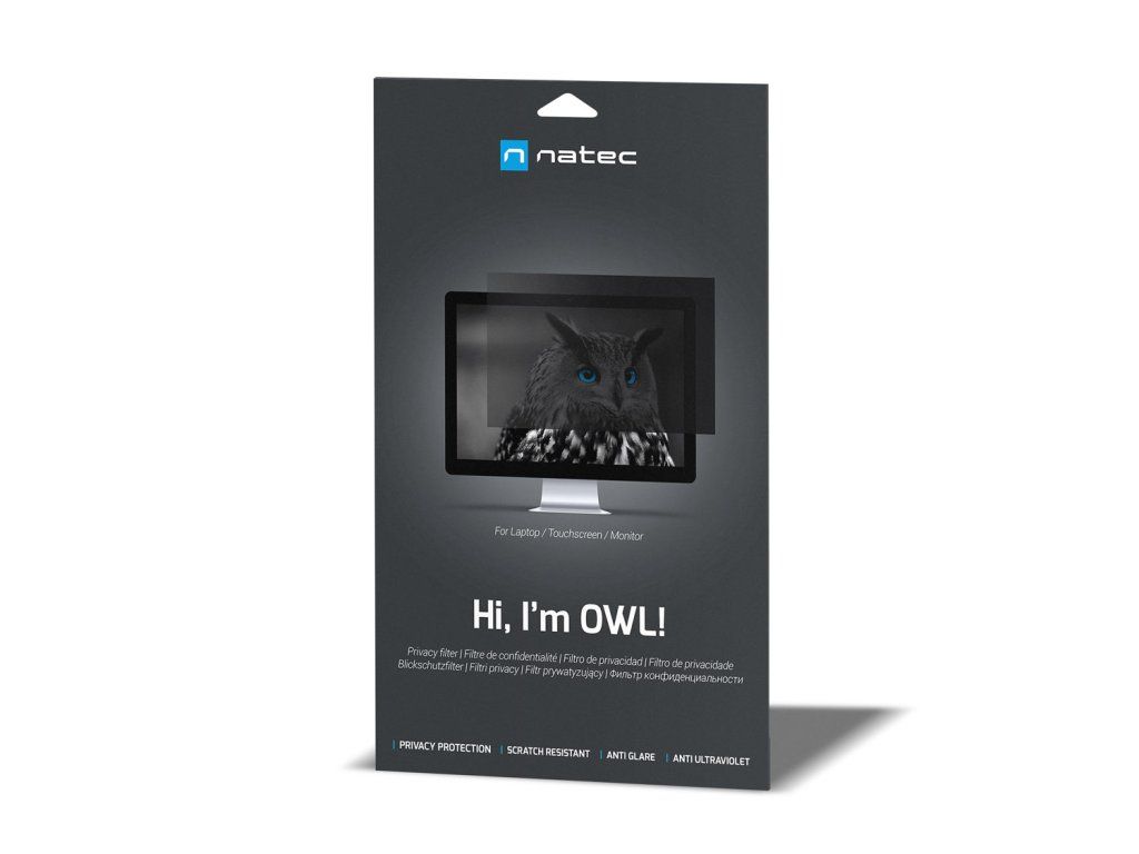 Seznamte se s Natec Owl Filtr pro ochranu soukromí Natec Owl je nenápadný překryvný prvek na obrazovku notebooku nebo monitoru počítače. Plní důležitou funkci zabezpečení osobních a důvěrných údajů. Filtr je k dispozici v mnoha velikostech: 13,3'', 14'', 15,6'', 21,5'', 23,8'', 24'', 27''. Technologie Filtr je vyroben z 10 vrstev a využívá technologii mikrožaluzie, která zabraňuje další osobě, která se dívá ze strany, aby viděla obsah zobrazený na obrazovce. I při mírném úhlu je obraz natolik ztlumený a zkreslený, že je obsah nečitelný, a od úhlu 30 stupňů obrazovka zcela zčerná. Ochrana očí Filtr ochrany soukromí Natec Owl chrání nejen důvěrná data, ale také náš zrak. Když trávíme hodiny před obrazovkou počítače, jsme vystaveni škodlivému záření. Filtr snižuje jeho pronikání a vlastnost proti odleskům dále snižuje únavu očí. Bezpečná obrazovka Filtr ochrany soukromí je vyroben z odolného materiálu, který navíc chrání obrazovku před nečistotami, poškrábáním a také snižuje vliv šmouh a otisků prstů. Filtr rovněž zachovává funkce dotykového displeje. Snadná montáž Díky háčkům připevněným k rámu monitoru můžeme filtr kdykoli snadno a rychle nasadit nebo sundat. Tento způsob se osvědčí, když chcete sdílet obsah zobrazený na obrazovce. Vlastnosti: - Filtr soukromí, který chrání vaše osobní údaje nebo důvěrné informace. - Technologie mikrožaluzie zajišťující průhled zepředu a úplné zatemnění ze strany pohled eliminující možnost ''nahlížení přes rameno''. - Vlastnost proti oslnění snižující únavu očí a zabraňující poškození zraku - Ochrana obrazovky proti nečistotám, poškrábání a otiskům prstů - 2 možnosti upevnění: háčky na rámu obrazovky Specifikace: Úhlopříčka obrazovky: 27'' Velikost: 16:9 Délka: 337 mm Šířka: 598 mmDodatočné parametre