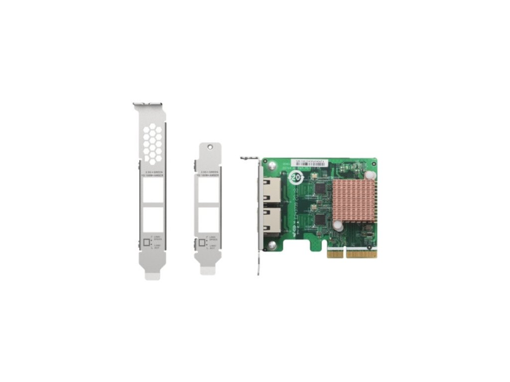 QXG-2G2T-I225 nabízí dva porty pro připojení 2,5GBASE-T, které podporují rychlosti 2,5G, 1G, 100 Mb/s a 10 Mb/s. Jedná se o kartu PCIe Gen2 x2, kterou lze nainstalovat do QNAP NAS nebo počítače se systémem Windows®/Linux®. Stávající kabely CAT 5e lze použít s QXG-2G2T-I225 k okamžitému upgradu na síť 2,5GbE. QXG-2G2T-I225 také podporuje Windows Server 2019 a poskytuje efektivní správu serverů s podporou Intel Teaming (Link agregation), PXE, Intel AMT, Wake on LAN a VLAN. Technické parametry *Řadič: Intel Ethernet Controller I225-LM *Konektor: RJ45 *Rozhraní PCIe: PCIe Gen2 x2 *Přenosové rychlosti: 2,5 Gbps / 1 Gbps / 100 Mb / s / 10 Mb / s *Podporované operační systémy: QTS 4.4.2 nebo novější, Windows 10 (vyžaduje se ovladač), Ubuntu (vyžaduje se ovladač), Windows Server 2016/2019 (vyžaduje se ovladač) *Držák: Předinstalovaný nízkoprofilový držák *Port a kabel: RJ-45, přes kabel třídy CAT-5 *Podporované funkce: PXE, Wake-On-LAN (WoL), 9k jumbo frame, 802.1AS-rev / 1588, 802.1Qav / 802.1Qbv, Time Sensitive Networking (TSN), RSS + MSI-X, Teaming & VLAN support, Intel AMT Obsah balení *1 x síťová karta (předinstalovaný držák s nízkým profilem) *1 x QIG *2 x držáky (plné výšky a specializované pro QNAP NAS) Vhodné pro modely: PC/Server nebo NAS s PCIe slotDodatočné parametre