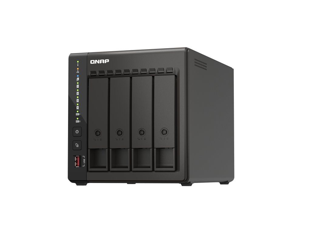 TS-453E Dva porty 2,5GbE, 8 GB RAM a dlouhodobá dostupnost Odkaz na web výrobce: https://www.qnap.com/cs-cz/product/ts-453e Seznam kompatibility pro tento model: https://www.qnap.com/cs-cz/compatibility/?model=714 Recenze CZC: https://www.czc.cz/geek/recenze-qnap-ts-253e-sikovny-vseumel/clanek Recenze DDWORLD: http://www.ddworld.cz/pc-a-komponenty/pevne-disky/qnap-ts-453e-8g-test-a-recenze-opravdu-vybavene-a-vykonne-nas.-vse-co-je-treba.html Funkce Zařízení TS-453E je vybaveno připojením 2,5GbE, 8 GB RAM a sloty M.2 pro NVMe SSD cache – tak je zajištěn vysoký výkon pro aplikace, jako jsou dozorovací systémy, virtuální počítače, souborové servery nebo zálohovací servery. Dva výstupy HDMI umožňují také přímé přehrávání multimédií a robustní sledování za účelem dozorování. Společnost QNAP bude poskytovat dlouhodobou dostupnost a podporu pro zařízení TS-453E, což je skvělá volba pro podniky, které potřebují odpovídající modely NAS nasazené na více místech. Od verze 5.2.2 již je možné do NAS nainstalovat také QuTS hero na bázi ZFS. *2,5krát vyšší rychlost sítě ve srovnání se stávajícími kabely CAT5e, podporuje sdružování portů pro přenos až 5 Gb/s. *Dosáhněte vyššího výkonu NAS instalací modulů M.2 2280 NVMe PCIe SSD (prodávají se samostatně) nebo Edge TPU. *Výkon systému a multitasking jsou optimalizovány díky 8 GB RAM. *Model #TS-453E bude k dispozici a podporován společností QNAP po prodlouženou dobu, až do roku 2029. *Rozšíření na dvě obrazovky lze použít ke sledování za účelem dozorování nebo přehrávání videa ve vysokém rozlišení 4K. *Podporuje rozšiřující jednotky USB (viz seznam kompatibility). OBSAH BALENÍ *TS-453E *Ethernet Cable x 1 *Power cord x 1 *AC Adapter *Flat head screw (for M.2 SSD) x 2 *Flat head screw (for 3.5'' HDD) x 16 *Flat head screw (for 2.5'' HDD) x 12 *Quick installation guide (QIG) *Drive tray keys x 2 SPECIFIKACE CPU *Čtyřjádrový/čtyřvláknový procesor Intel® Celeron® J6412, navýšení až na 2,6 GHz Architektura CPU *x86 64 bitů Jednotka s pohyblivou řádovou čárkou *Ano Šifrovací modul *Ano (AES-NI) Systémová paměť *8 GB na desce (bez možnosti rozšíření) Maximální paměť *8 GB Paměť Flash *4 GB (dvojitá ochrana OS při spouštění) Pozice pro diskové jednotky *4 x 3,5'' SATA 6 Gb/s Kompatibilita diskových jednotek *3,5'' SATA jednotky pevných disků *2,5'' SATA jednotky pevných disků *2,5'' SATA SSD Vyměnitelné za provozu *Ano Podpora akcelerace SSD cache *Ano Gigabitový Ethernet port (RJ45) *2 (2,5G/1G/100M/10M) Rámec Jumbo *Ano USB port *2x USB 2.0 *2x USB 3.2 Gen 2 (10 Gb/s) HDMI *2 x HDMI 1.4b (až 3840 x 2160 při 30 Hz) Tvarový činitel *Stolní Indikátory LED *Napájení, stav, LAN, USB, HDD1-4 Tlačítka *Napájení, reset, Automatické kopírování na USB Rozměry (V x Š x H) *177 × 180 × 235 mm Hmotnost (čistá) *3 kg Hmotnost (celková) *4,3 kg Provozní teplota *0 - 40 °C (32°F - 104°F) Relativní vlhkost *Relativní vlhkost 5 až -95 %, bez kondenzace, teplota vlhkého teploměru: 27 °C (80,6 °F) Napájecí jednotka *Adaptér 90W, 100–240 V Spotřeba energie: Režim spánku HDD *15,78 W Spotřeba energie: Provozní režim, typický.S plně obsazenými jednotkami *33,88 W Ventilátor *1 x 120 mm, 12 V DC Systémové varování *Bzučák Bezpečnostní slot Kensington *Ano Max. počet souběžných připojení (CIFS) *1500 Více informací se dozvíte na stránkách výrobceDodatočné parametre