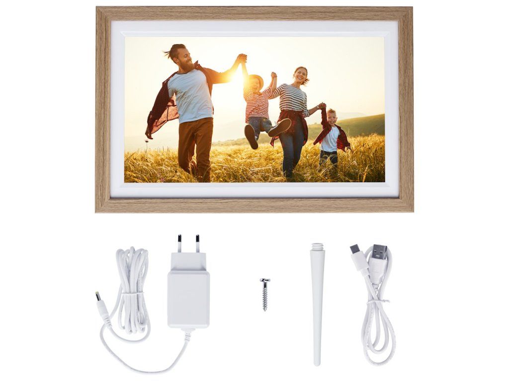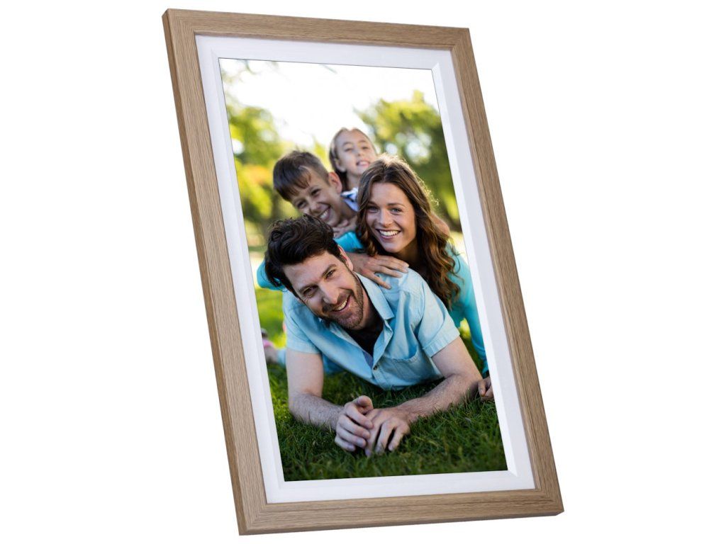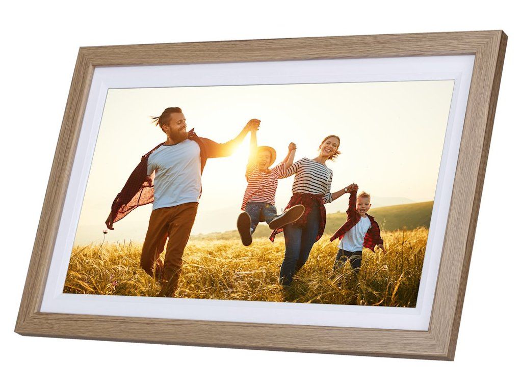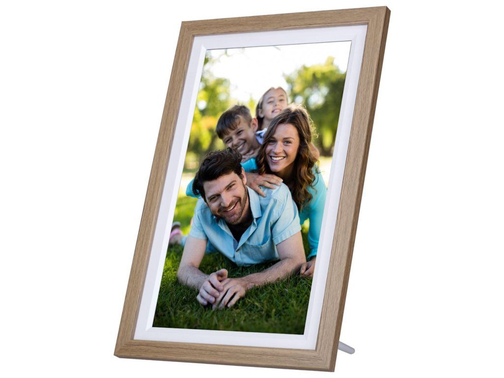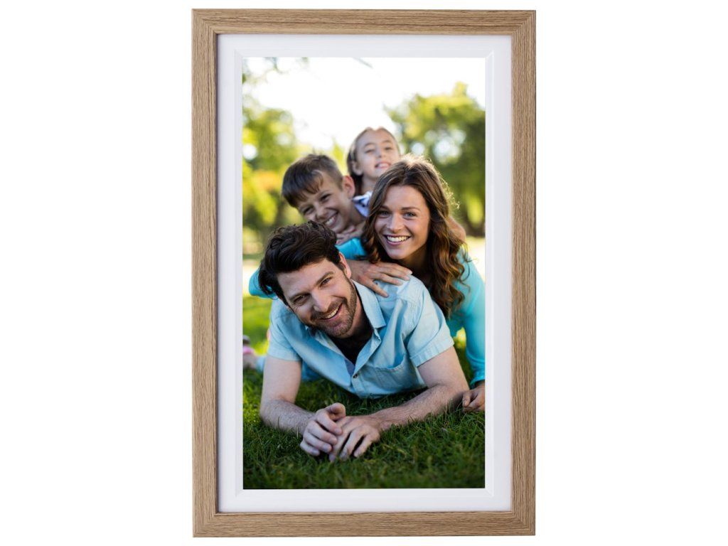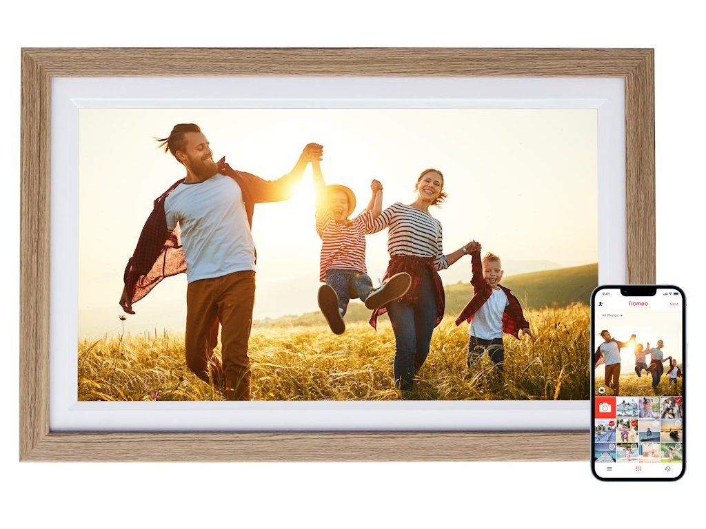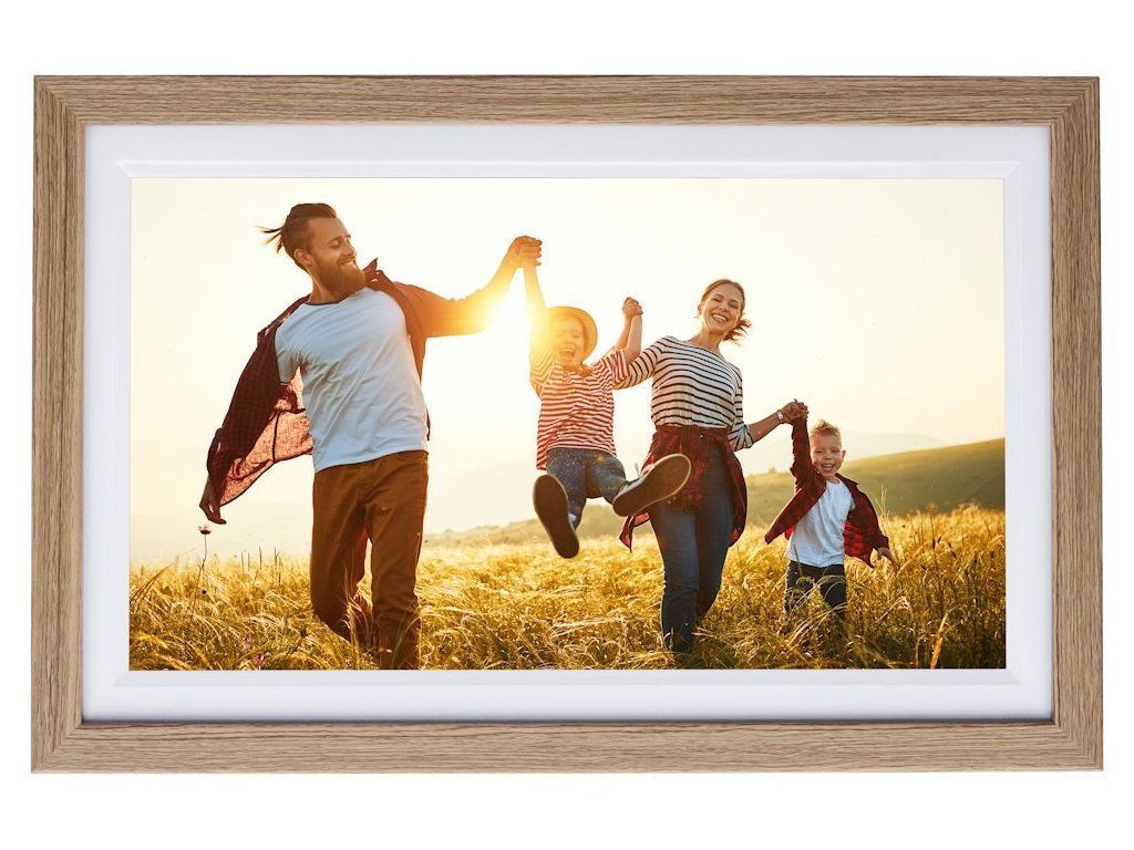 Moderní digitální fotorámeček s 15,6" Full HD IPS displejem a elegantním designem v dřevěné optice dub s bílým paspartou. Díky Wi-Fi připojení a bezplatné Frameo aplikaci můžete snadno sdílet fotografie a videa přímo ze svého telefonu nebo tabletu s rodinou a přáteli po celém světě.