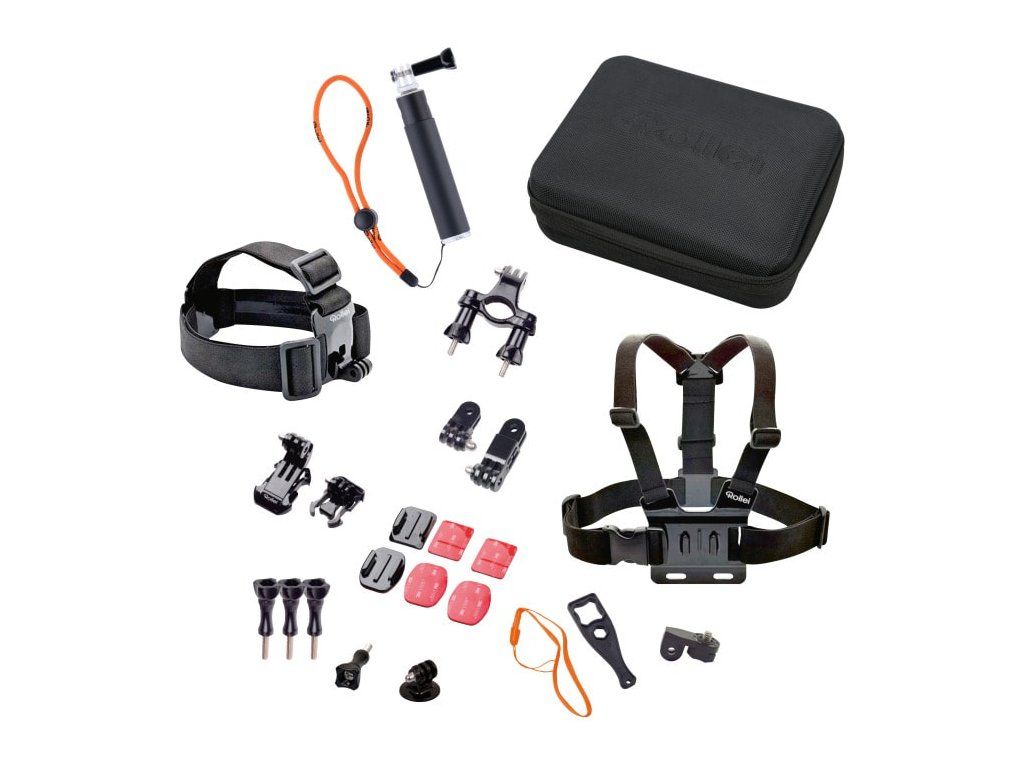 Tato sada příslušenství Rollei pro outdoor je vhodná na kolo, motorku, respektive motocross, pro horolezce, lyžaře, běžce a další sportovce. 23dílná sada je kompatibilní jak s kamerami Rollei, tak GoPro a díky praktické tašce nejenom vše potřebné snadno umístíte, ale také zajistíte jednoduchou přenosnost. Set podporuje především komfortní montáž a upevnění na těle či, přilbě nebo řídítkách. Ve výbavě nemůže chybět teleskopická selfie tyč pro panoramatické snímky.