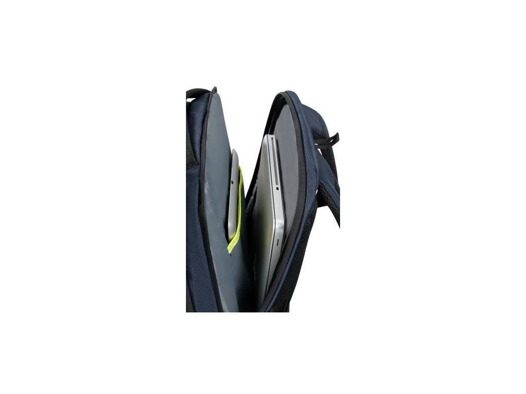 Samsonite GUARDIT 3.0 LAPT. BACKPACK M 15.6" Blue batoh na notebook Samsonite LAPT. BACKPACK M 15,6" je rozdelený na tri časti. V prvej časti je organizér + dve väčšie vrecká, v druhej je vrecko na zips, vrecko na dokumenty + voľný priestor. V tretej časti je polstrovanie na uloženie notebooku a priehradka na tablet. Batoh má ochranné polstrovanie chrbta, nastaviteľné chrbtové popruhy a tzv. popruh na pripevnenie k rukoväti kufra..Dodatočné parametre