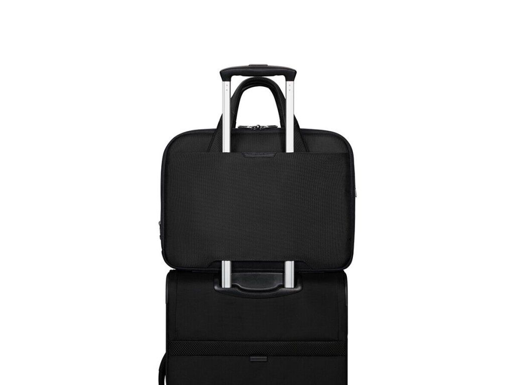 Brašna na notebook Bailhandle 15,6'' EXP z kolekce PRO-DLX 6. Materiál: exteriér - Ballistic nylon, Interiér - 100% Recycled Polyesther (RPET) Popis: prostor na notebook 39,6 cm / 15,6'' prostor na tablet 26,7 cm / 10,5'' rozšiřitelná ochrana RFID dvojitý USB port (USB-A, USB-C) EASY PASS Systém - umožňuje přístup kabelů skrze různé kapsy zavazadla bez toho, aby se vypojily z elektronického zařízení během jeho nabíjení. karabinka na klíče síťovaná kapsa kapsa na dokumenty voděodolný jmenovka smart sleeve - návlekový pásek sloužící ke snadnému připevnění na rukojeť kufru dvě ruční ucha odnímatelný protiskluzový ramenní popruh rozměr: 42 x 30,5 x 15/21 cm objem: 16/23 l váha: 1,4 kg Záruka 2 roky.Dodatočné parametre