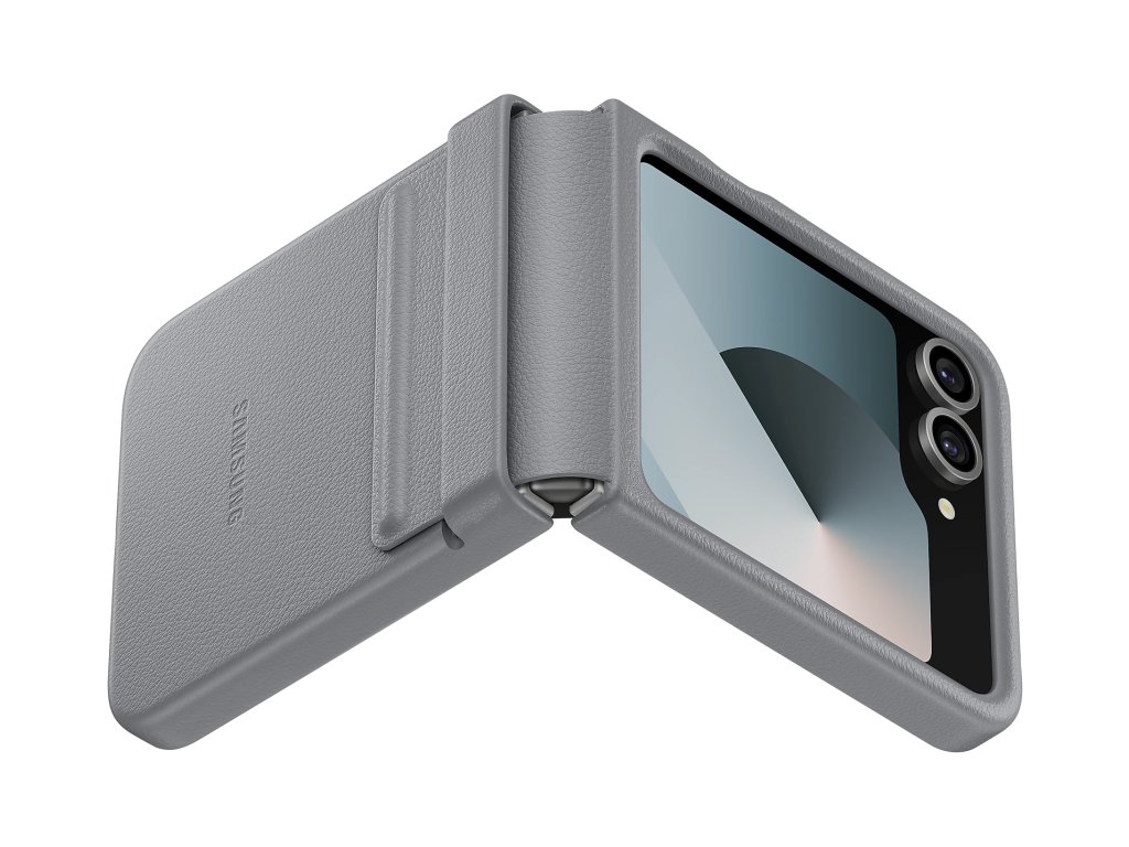 Samsung Z Flip6 - ochranný kryt z veganské kůže Ochranný kryt z veganské kůže je vybavený měkkou vnitřní podšívkou, která poskytuje dodatečnou ochranu. Mimořádné krytí zajišťuje speciální chlopeň, zabraňující poškození bočního pantu telefonu. * ochranný kryt, který skvěle padne do ruky * jemný na dotek * šedá barvaDodatočné parametre