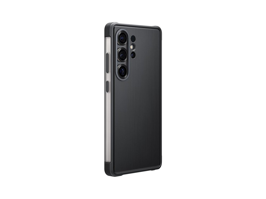 S25 Ultra Tvrzený zadní kryt Stvořený pro stabilní úchop *Tvrzený ochranný kryt prokazatelně odolává pádům z výšky až 1,2 m na pevný povrch, jakým je například ocel. Jeho design a vzor zajišťují spolehlivou ochranu i komfortní držení telefonu. Připraven za všech okolností *Každý komponent má svůj účel: zvýšené okraje poskytují ochranu, drážkovaný vzor zvyšuje stabilitu při držení a polstrovaná vrstva zabezpečuje dodatečnou odolnost. To vše působivě zasazené do moderního, elegantního vzhledu.Dodatočné parametre