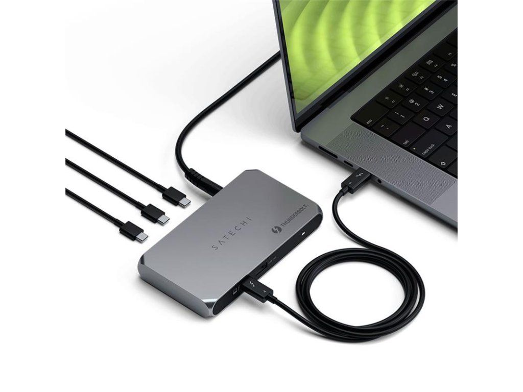 Thunderbolt 4 Slim HUB Pro - vyrobený z vysoko kvalitného hliníka pre lepšiu odolnosť a efektivitu - elegantný a moderný dizajn - ponúka vylepšenú šírku pásma pre video a dáta - stanica rozširuje možnosti a periférie vášho zariadenia - nabíjanie zariadení technológiou GaN s výkonom až do 96W - rýchlosť prenosu dát až 40 GB/s - podpora rozlíšenia až 8K(30Hz), 2x 4K(60 Hz) alebo 6K na Mac - 3 porty Thunderbolt 4 downstream poskytujú až 6 úrovni Daisy-Chaining, ktoré umožňujú lepšiu dostupnosť zariadeniam pripojiť k stanici - 1 port USB-A 3.2 Gen 2 - 10 GB/s - kompatibilné pre PC Thunderbolt 4, Mac Thunderbolt 4/3 pri MacOS 11 a novšie verzie - spätná kompatibilita Thunderbolt 3, USB Obsah balenia: Thunderbolt 4 Slim Hub Pro TB4 kábel USB-C / USB-C Sieťový adaptér Napájací kábel C5 Používateľská príručka Rozmery: 310 x 74 x 18,25 mm Hmotnosť: 241 gDodatočné parametre