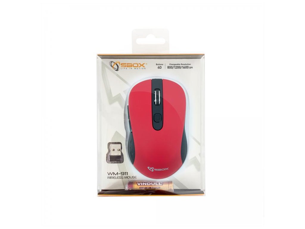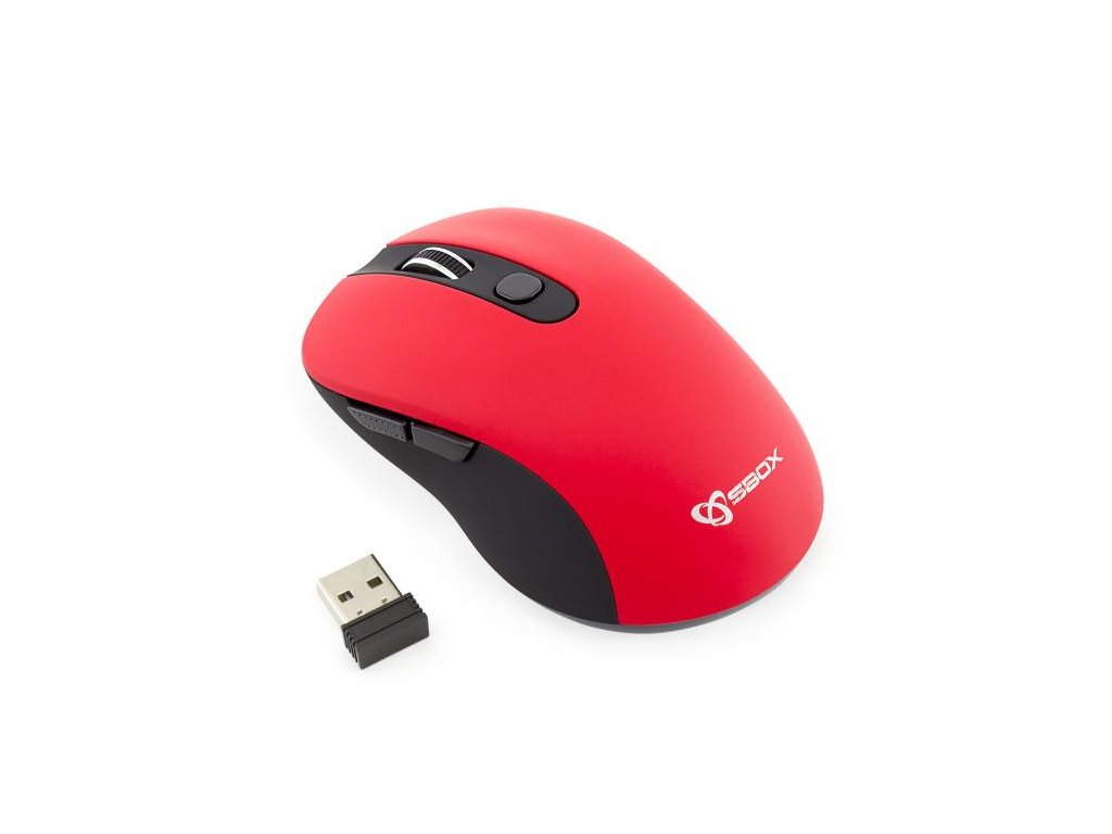 6D optická bezdrôtová myš SBOX, Rozlíšenie: 800/1200/1600 DPI, Dosah: 10m, Mikro USB prijímač, rozhranie micro USB prijímača: USB 2.0, Farba: červená, Kompatibilná so systémom Windows 7/8/10 a Mac OS, Pripoj a hraj, rozmery: 107 x 63,5 x 38,5 mm, napájanie: 1x 5V AA batéria
