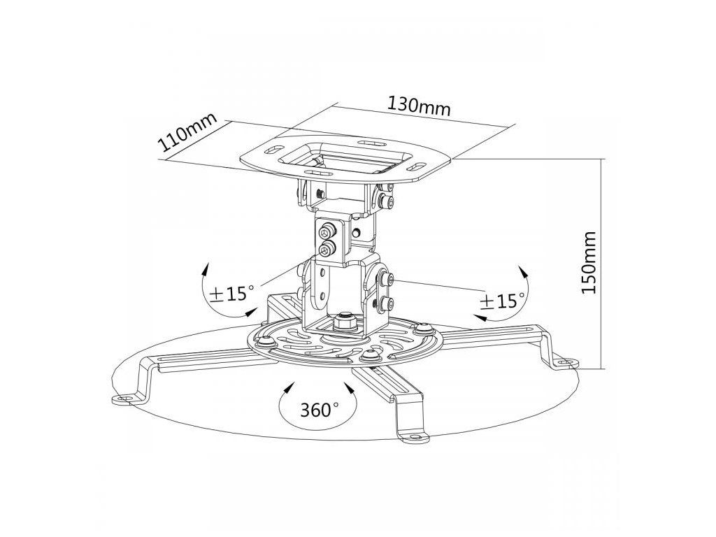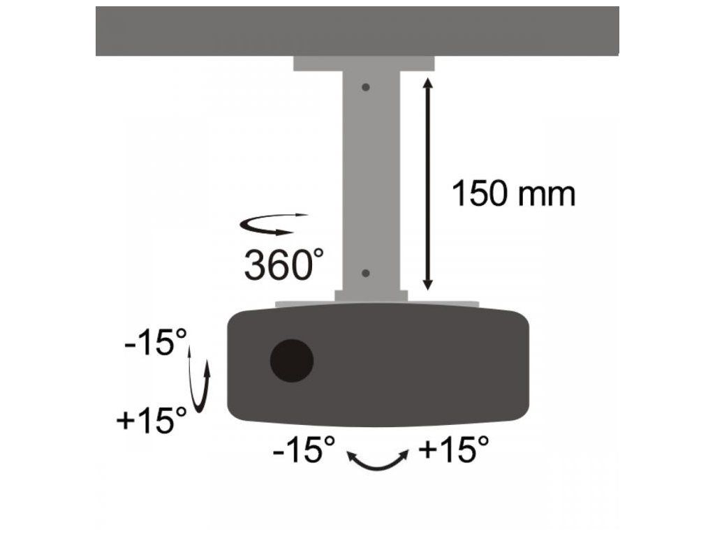 Stropný držiak na projektor, nosnosť: 13,5kg, montáž: od 54 do 320mm, náklon: -15° až + 15°, otáčanie: 360°, výška: 150mm