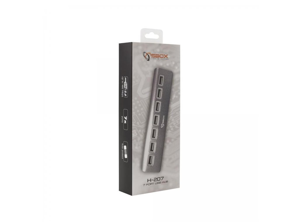 USB hub - rozbočovač. Počet portov: 7x. Typ USB: USB 2.0, prenosová rýchlosť: 480Mbps, materiál: hliníková zliatina, zdroj napájania: USB 5V / 500 mA (Max) cez USB, odolnosť: 10 000 vložení, kompatibilné s: Windows 7 / Windows 8 / Windows 10, Mac OS X, Linux OS ,dĺžka kábla: 50cm, rozmery: 149 x 37 x 22mm