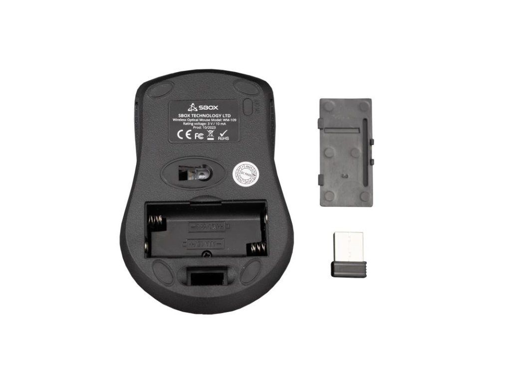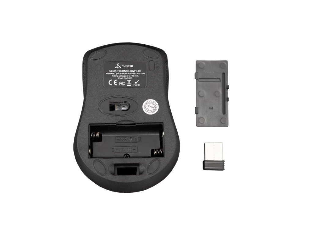 3D optická bezdrôtová myš SBOX, Rozlíšenie: 1000 DPI, Dosah: 10m, micro USB prijímač, rozhranie micro USB prijímača: USB 2.0, frekvencia: 2 GHz, Kompatibilná so systémom Windows XP / Vista / 7/8/10/11 a Mac OS, Pripoj a hraj, rozmery: 103 mm x 66 mm x 38 mm, váha: 59g, napájanie: 2x AAA batéria