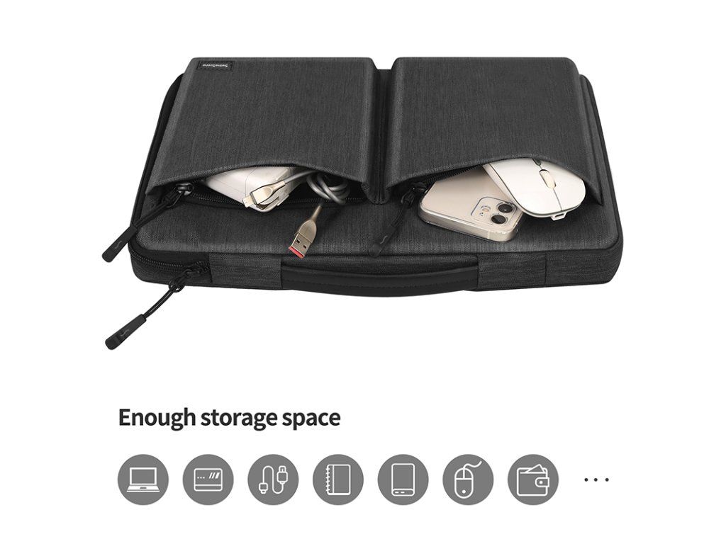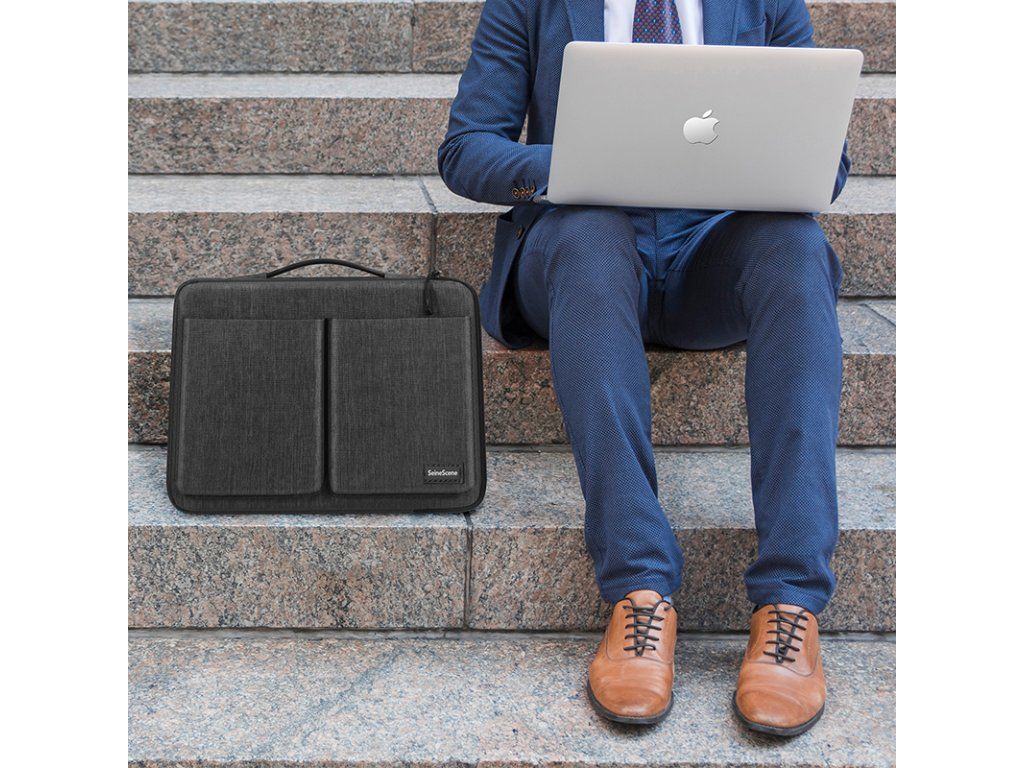 Ochranný obal pro notebook do velikosti 16''. Ochranný obal Seine Scene Orleans poskytne dostatek prostoru pro notebook a díky dvěma velkým předním kapsám také pro všechno příslušenství a drobnosti, které potřebujete s sebou. Vnější strana obalu je opatřena voděodolnou vrstvou, díky tomu nemusíte mít strach z cákanců ani drobného deště. Vnitřní strana je podšita měkkým mikrovláknem, které zařízení chrání před prachem a nečistotami. Pouzdro je vyztuženo tak, aby zařízení poskytlo dostatečnou ochranu při otřesech a lehkých pádech způsobených každodenní manipulací.Dodatočné parametre