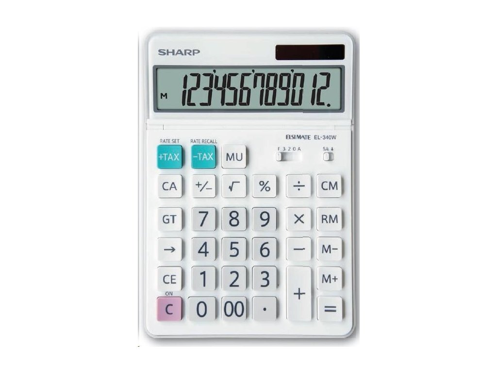 Nová stolná kalkulačka s unikátnym atraktívnym dizajnom, základnými matematickými a obchodnými funkciami a veľkým nakláňacím 12-miestnym displejom.
