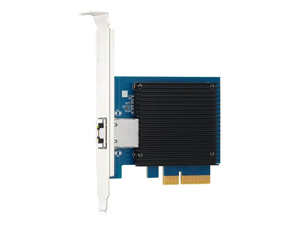 10G sieťový adaptér PCIe s jedným portom RJ-45 Rozhranie hostiteľskej zbernice PCI Express Gen-3 (alebo2) x4 1x 10 Gb/s RJ-45 Ethernet port (podporované rýchlosti: 10 Gb/s / 5 Gb/s / 2.5 Gb/s / 1 Gb/s / 100 Mb/s) Predinštalovaný držiak na celú výšku, obsahuje aj nízkoprofilový držiak.Dodatočné parametre