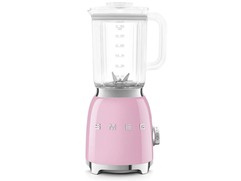 Smeg BLF03PKEU mixér, 800 W, 4 programy, funkce pulse, 18000 RPM, nerezové ostří, Ice crush, 50's Style, růžový BLF03PKEU