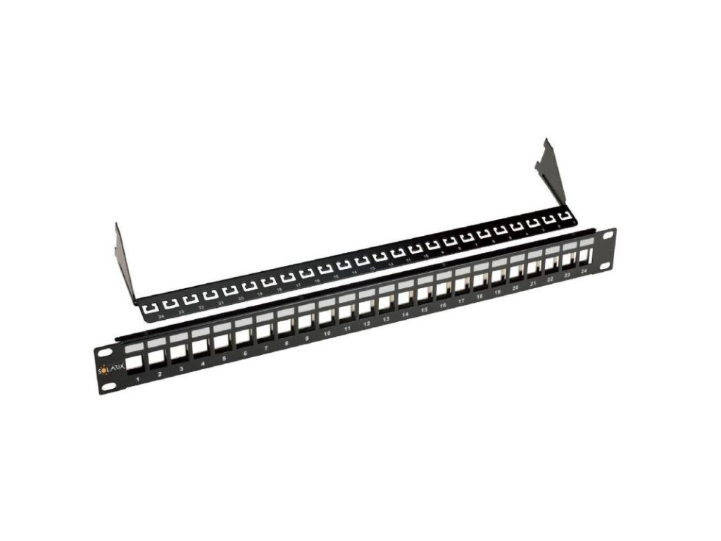 Patch panel Solarix s označením SX24M-0-STP-BK-UNI-N je univerzálny neosadený patch panel, ktorý je určený pre 24 tienených aj netienených keystonov Solarix SXKJ-xx-yyy-BK , SXKJ-xx-yyy-BK-SA a SXKJ-xx-yyy-BK-NA . Modulárne prevedenie patch panelu umožňuje pohodlnú inštaláciu a vďaka vyväzovacej lište, ktorá je súčasťou dodávky panelu, aj prehľadné vyviazanie a pevné uchytenie dátového kábla priamo k telu panelu. Tento patch panel je vybavený uzemňovacím drôtom, ktorý umožňuje jeho prepojenie so uzemnením rozvádzača. Farba patch panelu je čierna, veľkosť v dátovom rozvádzači je 1U. V prípade potreby je možné zaslepiť voľné porty panela záslepkou SXKJ-0-BK. Rozmery otvorov pre keystone sú u tohto modulárneho panelu Solarix 19,5+-0,1 mm x 14,8+-0,1 mm (tj. podľa STN EN 60603-7). Súčasťou balenia je 4 x M6 montážna sada, 24 x vyväzovací pásik a 1 x zemniaci drôt. Tento nový patch panel Solarix nahrádza modulárne panely s označením SX24M-0-STP-BK a SX24M-0-STP-BK-UNI.