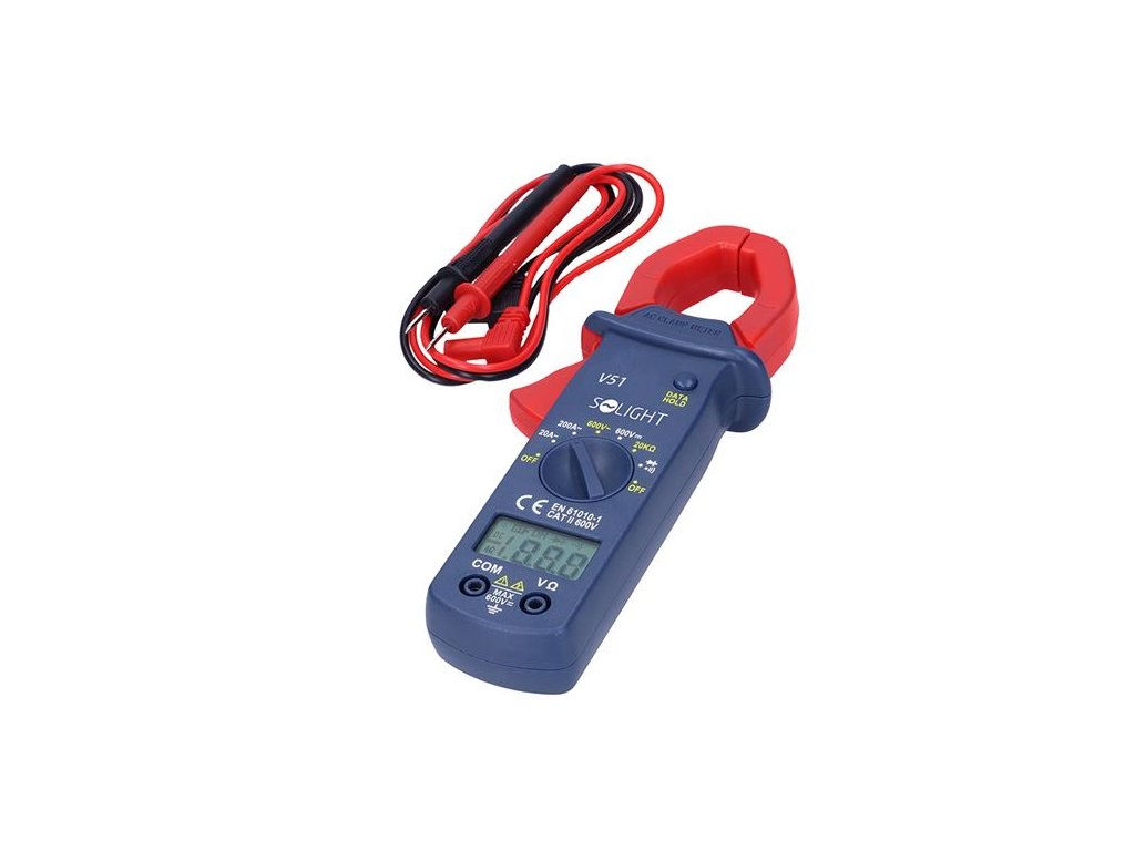 Klastrový multimeterDigitálny multimeter s maximálnym zobrazením 2 000 hodnôt a indikáciou slabej batérie. Ponúka automatické vypnutie po 15 minútach nečinnosti a zvukové upozornenie pred vypnutím. Meria jednosmerné napätie (600 V), striedavé napätie (True-RMS, 600 V), striedavý prúd (20 A - 200 A), odpor (20 k?) a ponúka test spojitosti so zvukovým signálom (vypnutie <50 ?). Test diód, funkciu Data Hold na uloženie hodnoty na displeji. Ochrana proti preťaženiu (250 V DC/AC RMS). Napájanie: 2x batérie AAA (sú súčasťou dodávky). Rozmery: 195 × 70 × 35 mm, hmotnosť: 172 g. EN61010-1, CAT II 600V.