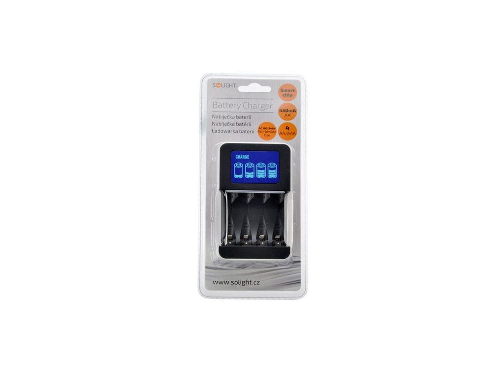 Solight nabíjačka s LCD displejom, AC 230V, 450mA, 4 kanály, AA/AAA, riadená mikroprocesorom DN25