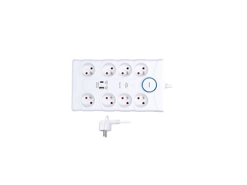 Prepäťová ochrana s USB nabíjačkou a 8 zásuvkamiSpoľahlivá prepäťová ochrana s integrovanou USB nabíjačkou chráni vaše zariadenie proti náhlym výkyvom napätia. Vďaka ôsmim zásuvkám a dvom USB portom je ideálny do domácnosti aj kancelárie. S maximálnou záťažou až 3680 W zvládne aj energeticky náročnejšie spotrebiče.