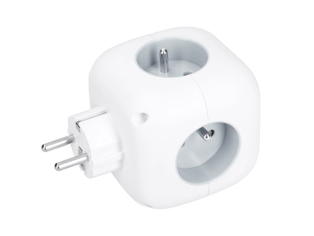 Šikovné rozmiestnenie a moderný dizajn Premyslené rozmiestnenie zásuviek umožňuje ľahké pripojenie rôznych napájacích káblov aj objemných napájacích adaptérov bez vzájomného prekážania. Elegantný dizajn kocky s zaoblenými hranami, bielym telom a šedými zásuvkami sa hodí do každého prostredia – či už ide o kanceláriu, domácnosť alebo pracovnú dielňu.