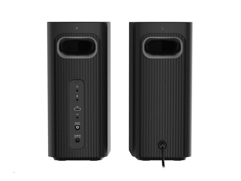 Bezdrôtové rozhranie Bluetooth 5.0 Slúchadlá/náhlavná súprava Mikrofón 3,5 mm vstup AUX-in Už vás nebaví neustále pripájať a odpájať náhlavnú súpravu z reproduktorov stolného počítača a striedať prehrávanie zvuku z reproduktorov a náhlavnej súpravy? So zariadením Creative T60 už nikdy nič podobné nezažijete! Pomocou tlačidla pohodlne umiestneného na prednej strane reproduktora môžete okamžite prepínať medzi prehrávaním zvuku zo zariadenia Creative T60 alebo zo slúchadiel. A to nie je všetko! Na pravom reproduktore nájdete gombík na nastavenie hlasitosti, tlačidlá Clear Dialog a Surround na aktiváciu zvukových technológií stlačením tlačidla a tlačidlo napájania na zapnutie reproduktora alebo prepínanie medzi zdrojmi zvuku. Reproduktorový systém Creative T60 je dokonalý stolný reproduktor 2.0 do vašej izby. Čistý a elegantný vzhľad, ktorý ladí s monitorom a zaberá väčšinu drahocenného priestoru na stole. V kombinácii so všetkými akustickými funkciami a možnosťami pripojenia umožňuje tento reproduktorový systém Creative T60 jednoducho a bezproblémovo vylepšiť predvolený zvuk vášho stolného počítača alebo notebooku. Rozmery Dĺžka kábla Hmotnosť Prevádzková teplota Výstupný výkon Meniče Frekvenčný rozsah Konfigurácia systému Odstup signálu od šumu Pracovná frekvencia Bluetooth Prevádzkový dosah zariadenia Bluetooth Verzia Bluetooth Profil Bluetooth Podporované kodeky Typ konektora Farba Verzia
