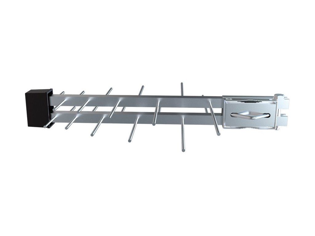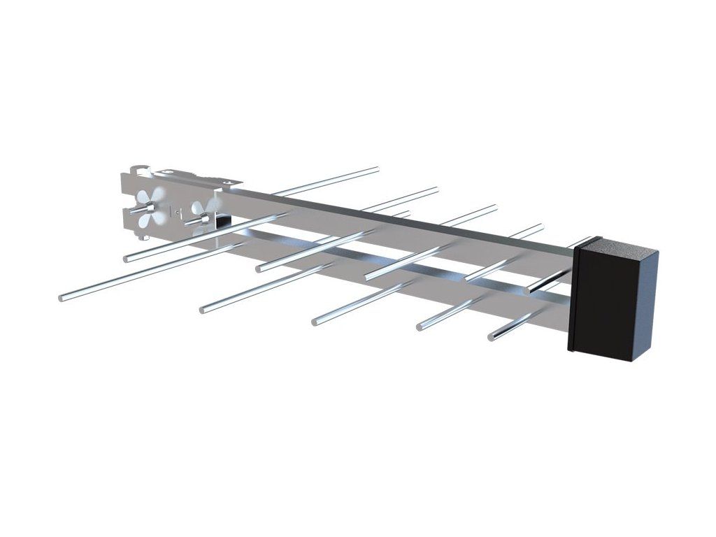 STRONG SRT ANT 100Venkovní anténa pro příjem DVB-T/T2 signálu s externím 5G/4G LTE filtrem je vybavena integrovaným zesilovačem se ziskem 16 až 18 dB. Montáž je přizpůsobena pro příjem v horizontální nebo vertikální polarizaci. Anténa disponuje připojením na F konektor. Napájení lze snadno realizovat pomocí USB adaptéru, nebo z přijímače po anténním kabelu (5 V).